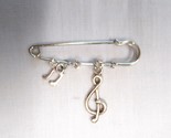 - 2" PIN BROOCH w 3 CRYSTALS w TREBLE G CLEF DOUBLE MUSIC NOTE DANGLING CHARMS