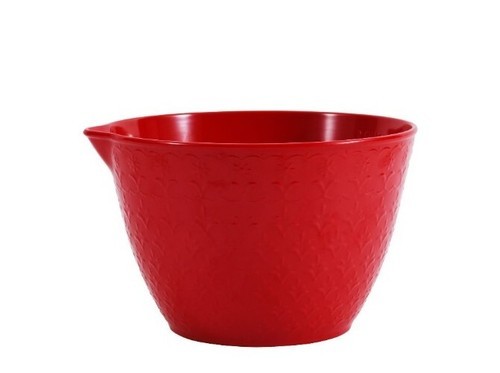 Red bowl has a 2.4-quart capacity