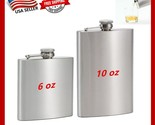 2 Pk Stainless Steel Liquor Pocket Hip Flask Whiskey Screw Cap Flagon 6 oz 10 oz