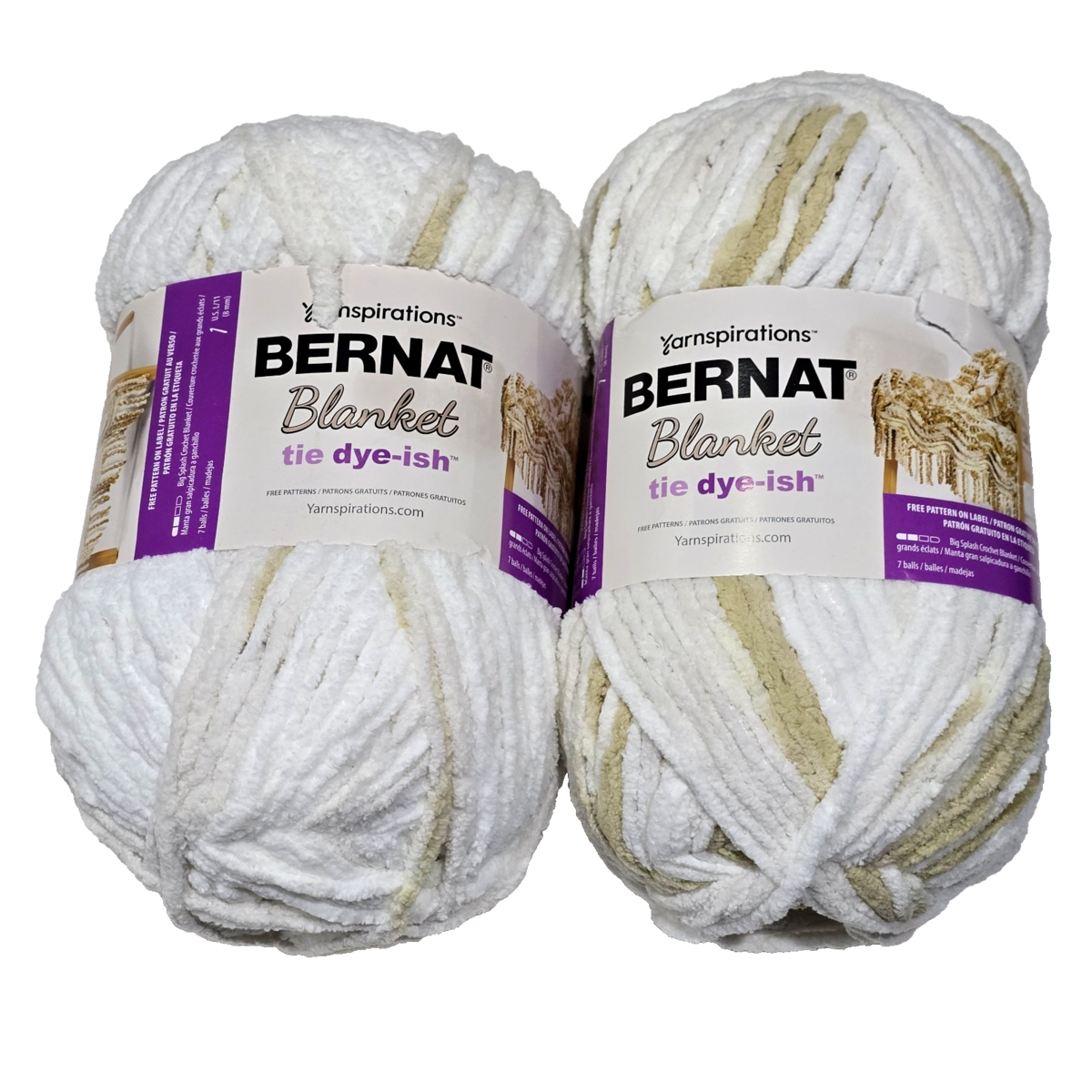 - 2 Pk Yarnspirations Bernat Blanket Tie Dye-ish Whispy Whites Super Bulky 10.5 oz