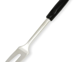 This fork's single stainless steel construction makes it a great go-to for durable daily use. The plastic handle fits comfortably in your hand you won't want to put it down! The stainless steel works great for cast iron and stainless steel pans. The hole in the handle makes for simple and easy storage. 12 Inch length provides enough distance from the pan to prevent getting burnt while sharp points allow for a way to poke and turn meat. Two pronged fork is durable enough for cooking and attractive enough for serving. Dishwasher safe to help with efficient clean up.