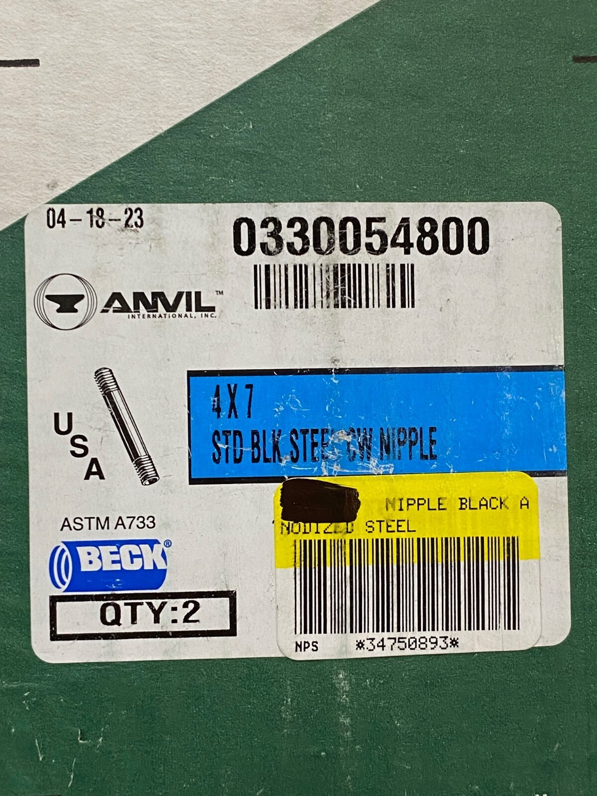 - 2 Quantity of ASC Pipe Nipples Black Anodized Steel 4"x7" 0330054800 (2 Qty)