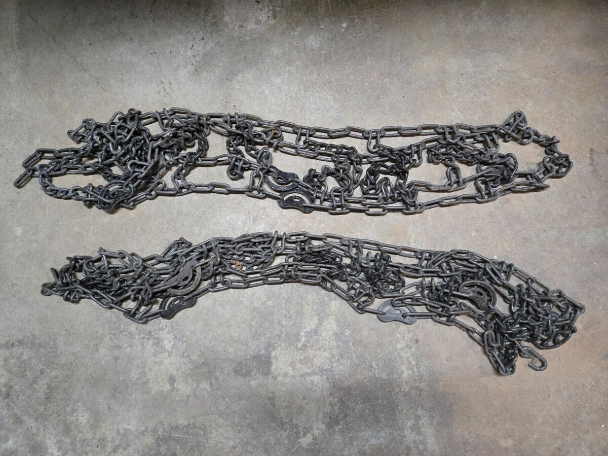 Ladder style snow chains, 120 inch length, 15 inch wide ladder sections.
