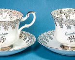 - 2 Royal Albert Cup & Saucer Sets "Congratulations 25 Anniversary" Silver Wedding