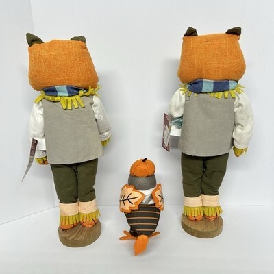 2 SPRITZ Harvest Scarecrow Fox And Feathery Bird Fall Holiday Decor Tabletop