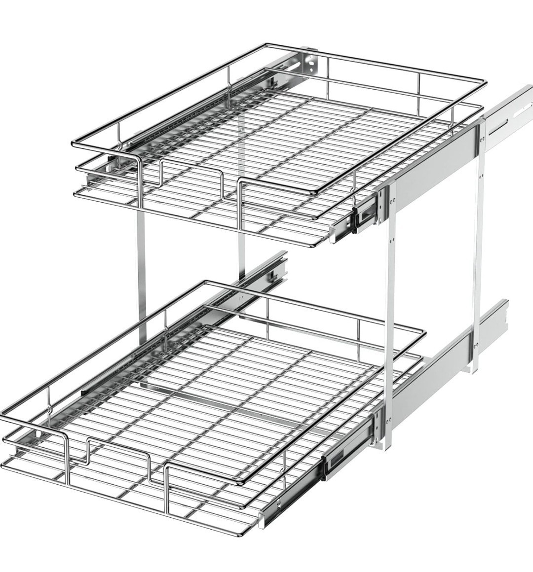 2 Tier 14W x 21D Pull Out Kitchen Cabinet Storage Organizer Sliding Shelves NOS
