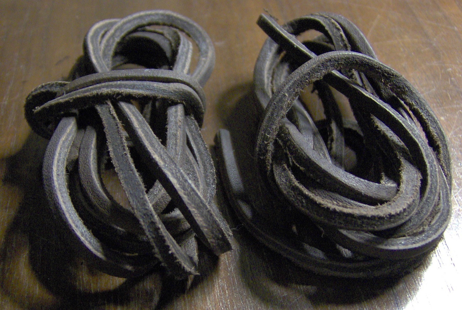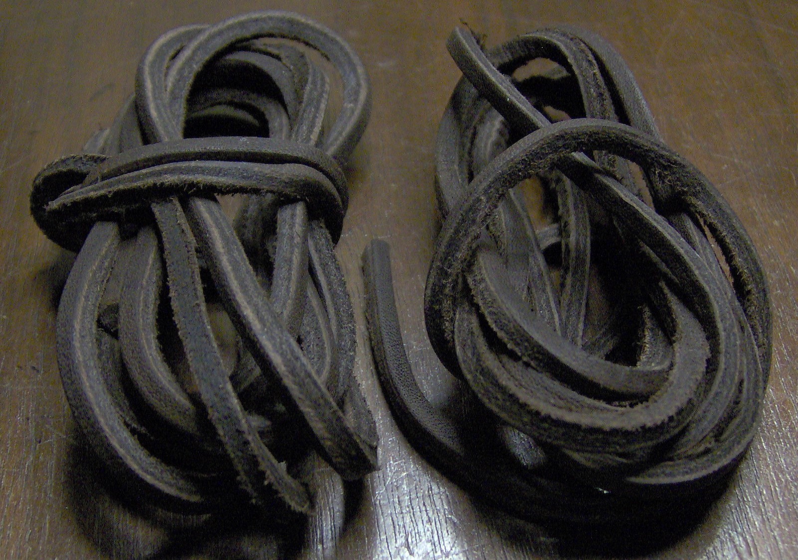 FOR SALE ARE TWO (2) NEW 50" x 1/8" (3mm) SQUARE CHOCOLATE BROWN LACES MADE OF TOP GRAIN 100% LEATHER FOR BOOTS, SHOES, BASEBALL GLOVE, BRACELET, CRAFTING, ETC. IMPORTED FROM ARGENTINA, THESE ARE HIGH QUALITY HIGH STRENGTH, OIL TANNED, DARK OAK BROWN COLOR, 100% LEATHER LACES, FLEXIBLE AND very STRONG WITH A MINIMUM 50 pound TEST CAPACITY, SUITABLE FOR USE IN BOOTS OR SHOES with 5 OR 6 PAIRS OF EYELETS, SHOES, SPERRY TOP SIDERS, BASEBALL GLOVE REPAIR, NECKLACE OR BRACELET PROJECTS, CRAFTING, ETC. THE LACES ARE SMOOTH, OIL TANNED ON THE FRONT SIDE. PLEASE TAKE A MOMENT TO REVIEW THE PICTURES AND MOUSE OVER THE IMAGE TO ZOOM IN TO A SCAN OF THE TWO (2) LEATHER LACES. THESE ARE GENUINE TOP GRAIN LEATHER LACES, IMPORTED FROM ARGENTINA. YOU WILL RECEIVE TWO (2) LEATHER LACES 50" length per lace SHIPPED BY USPS.....
