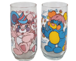 - 2 VINTAGE 1986 POPPLES GLASSES PINK PARTY + BLUE PC POPPLE PIZZA HUT GLASS CUP