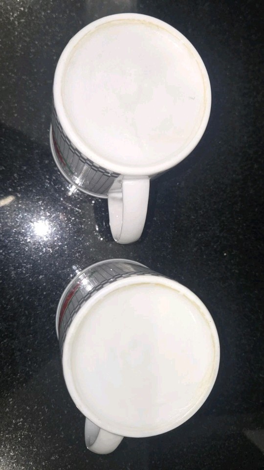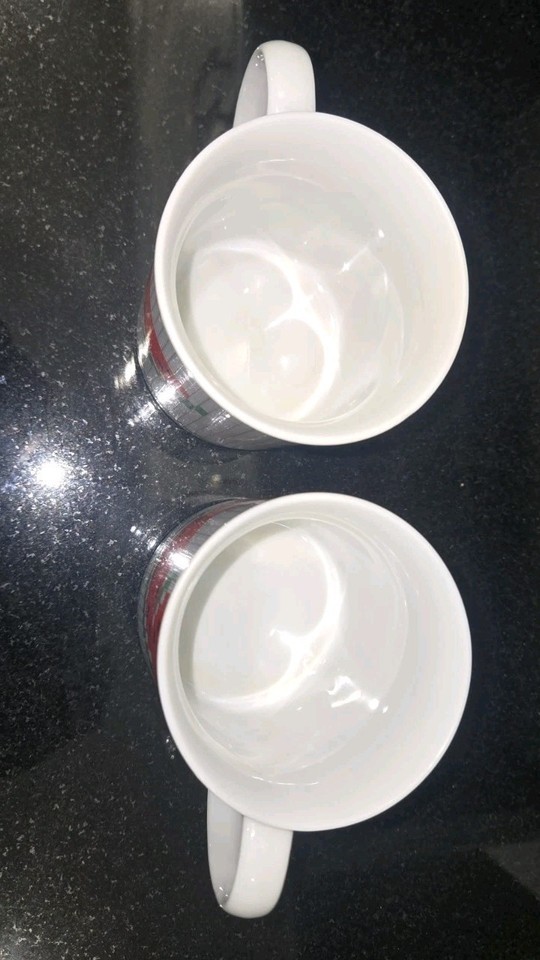 The product is a pair of vintage 90s pixel watermelon coffee mugs that feature a digital, computer-inspired design. These mugs are collectible and would make a unique addition to any kitchen or home decor. With their retro aesthetic and quirky design, they are sure to spark conversation and nostalgia for those who appreciate vintage items. Perfect for enjoying a cup of coffee while adding a touch of retro charm to your morning routine or collection.