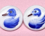 2 Vintage Blue Fluffy Birds Milk Glass Buttons 1/2 inch