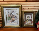 2 Vintage Framed Prints Woodland Wayfarer and Christmas Magic by Peggy Abrams Original frames and Dutch Mats