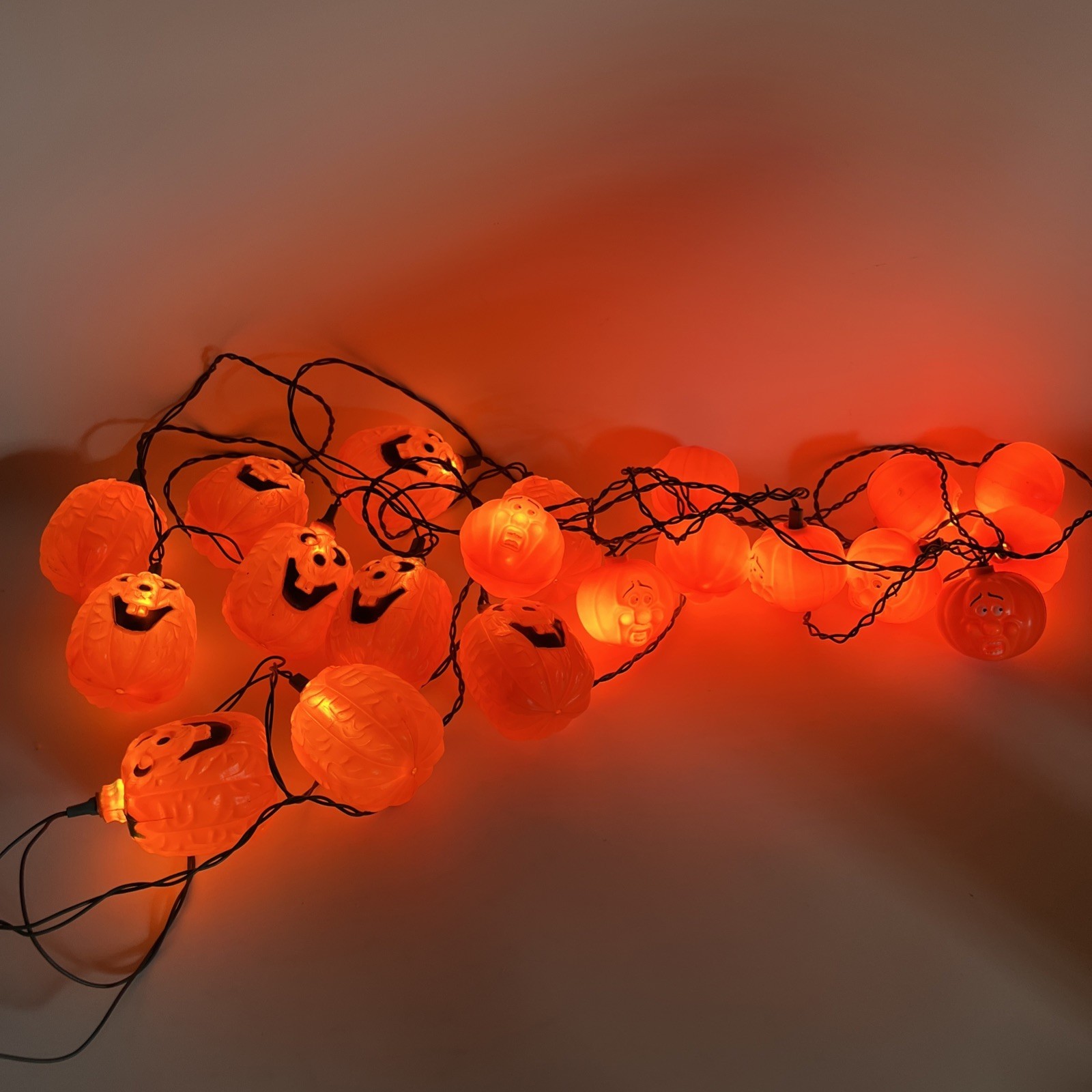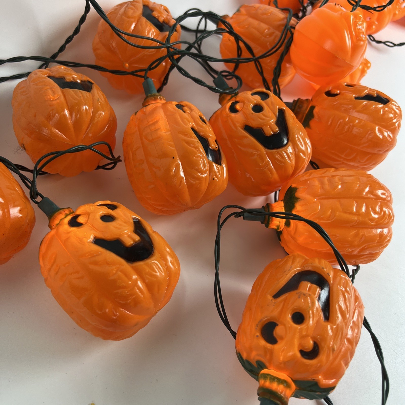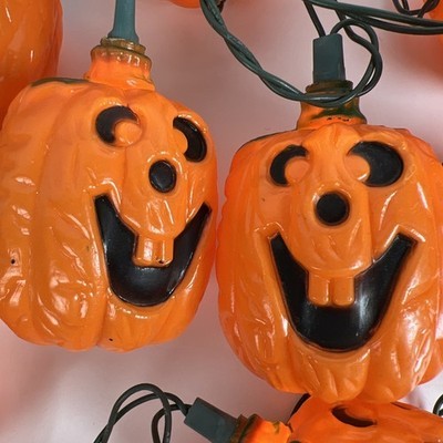 - 2 Vintage Halloween Blow Mold String Light Pumpkin Jack O Lantern 20 count Total
