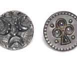 2 Vintage Round Metal Button Wiccan Crescent Moon Clover Key Hole Magical Cut Steel 5/8 inch