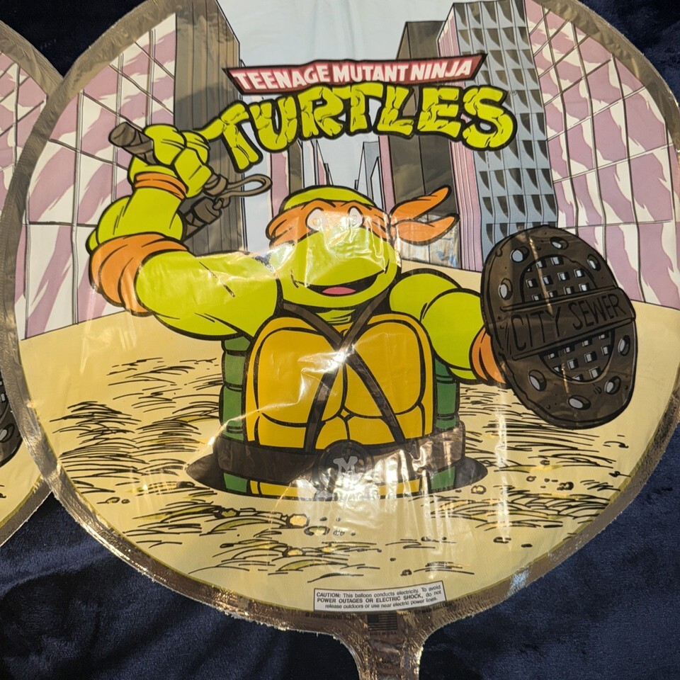 - 2 Vintage Teenage Mutant Ninja Turtle Mylar Foil Balloons TMNT Michelangelo NOS