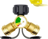 - 2 Way Propane Gas Tank Y Splitter Adapter Gauge for Camping Stoves BBQ RV Camper