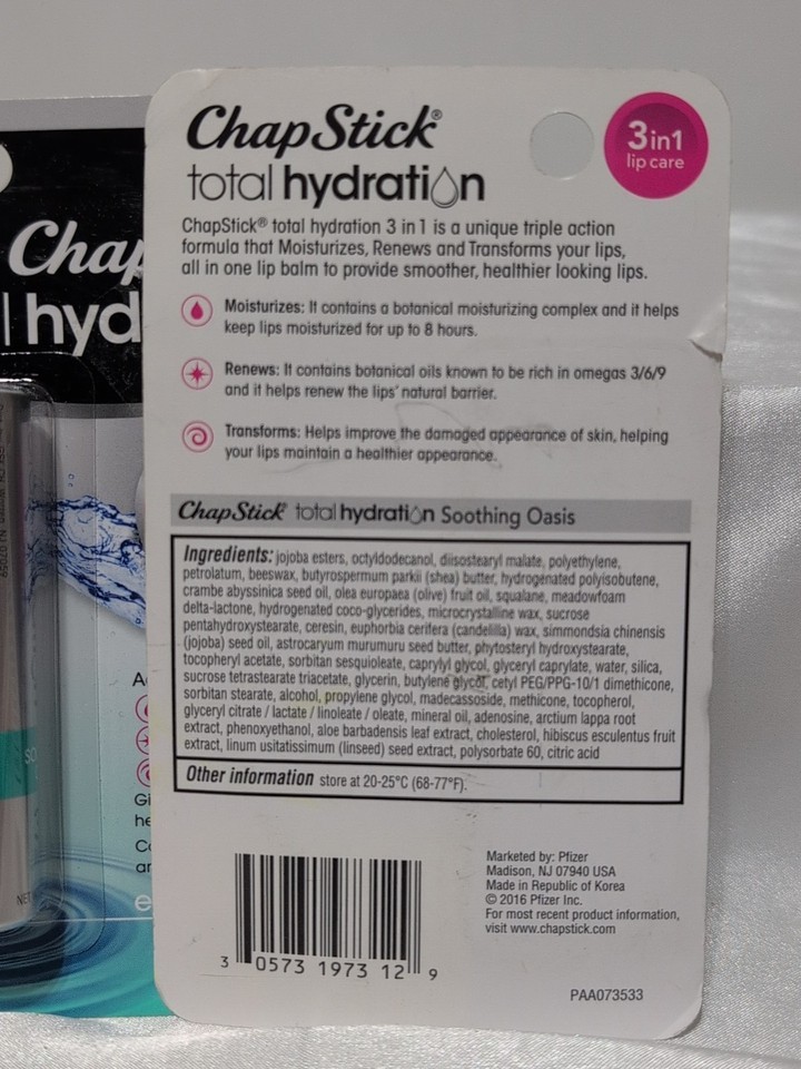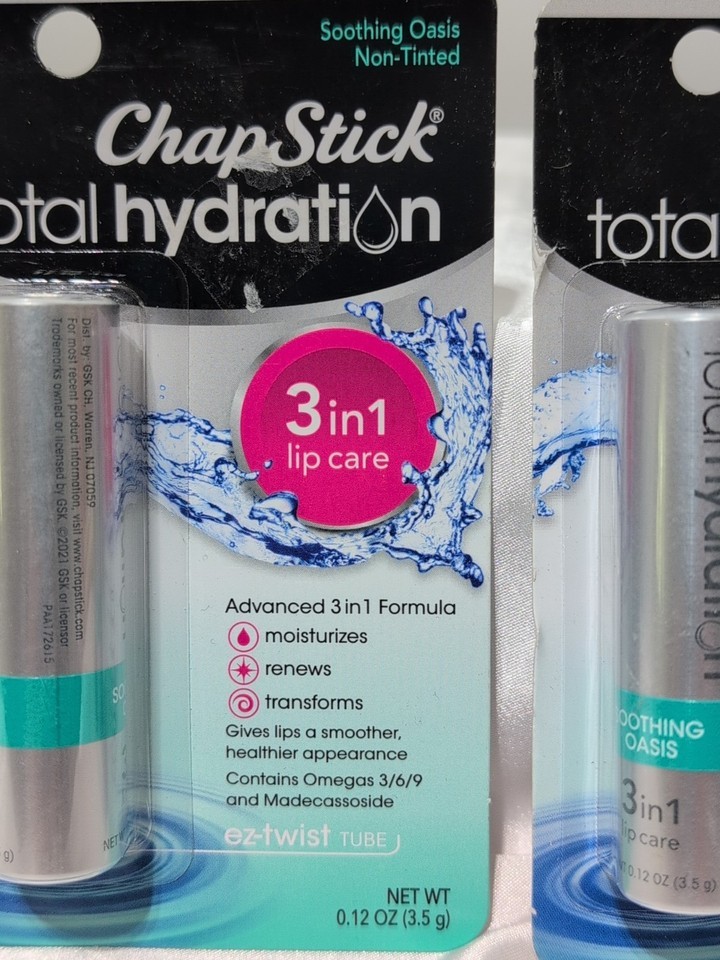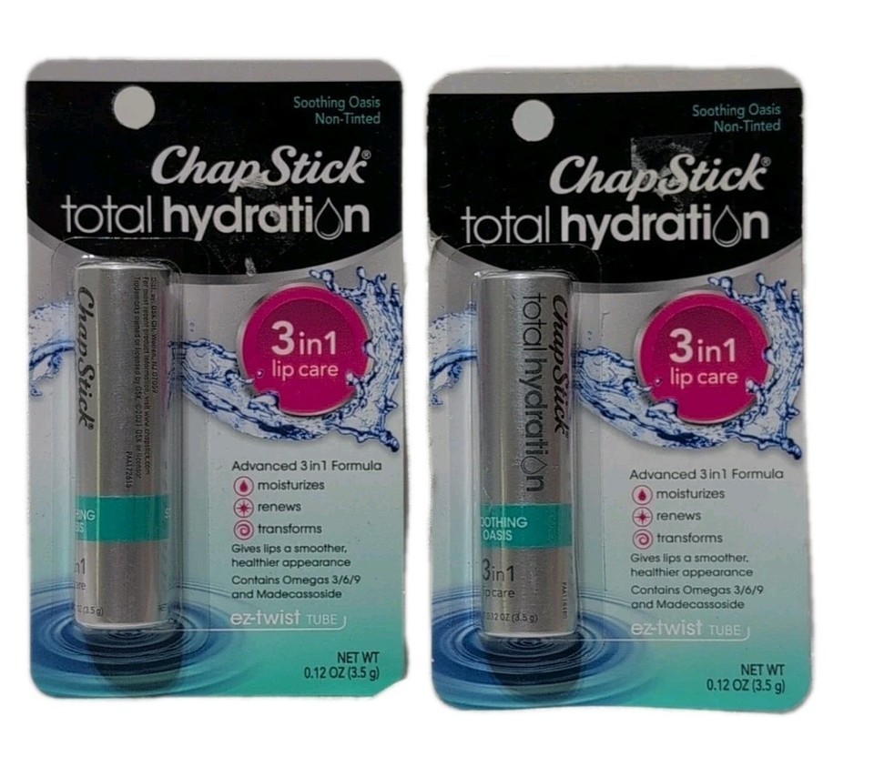 - 2 X Chapstick Total Hydration 3-In-1 Lip Care Soothing Oasis Non Tinted