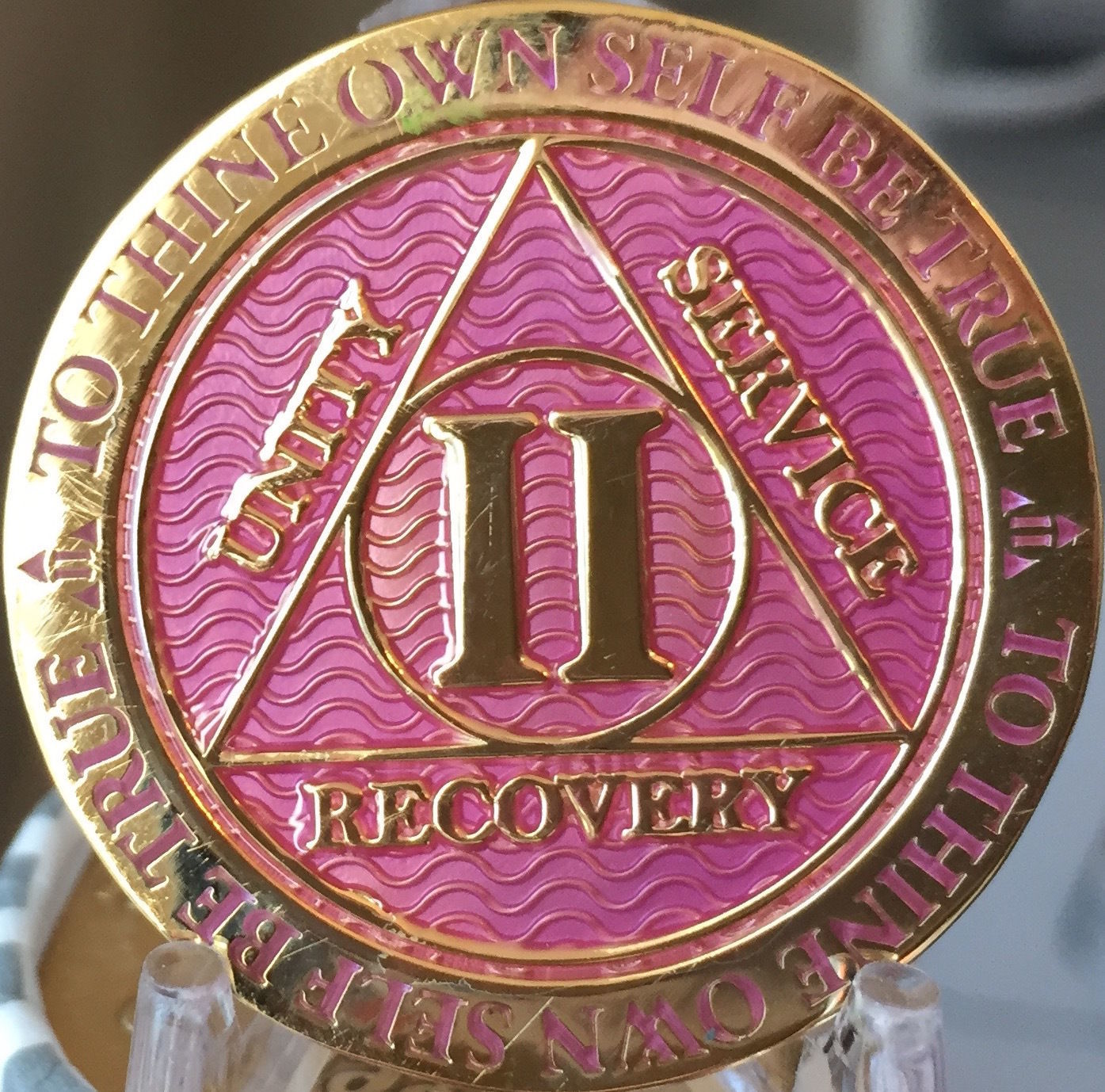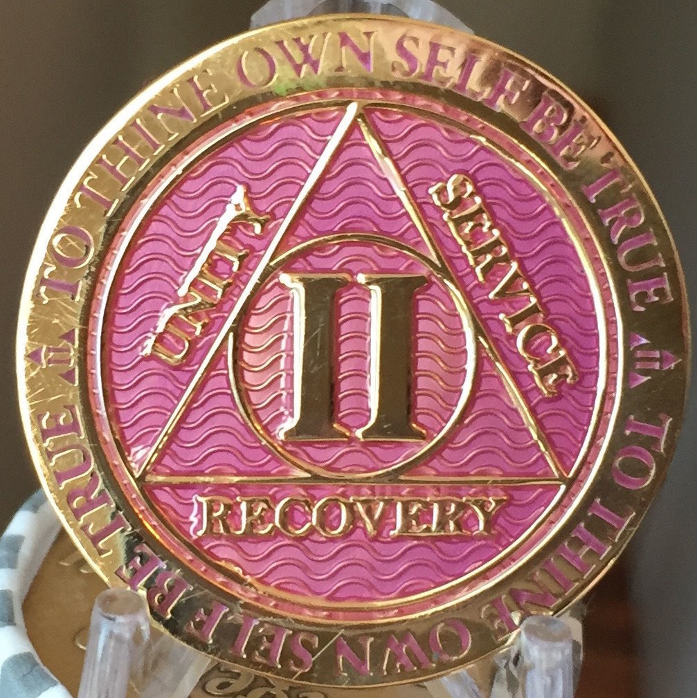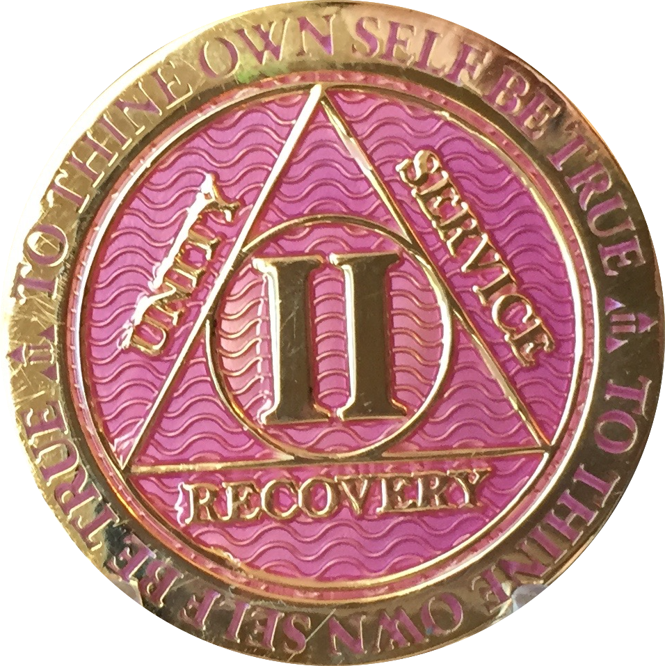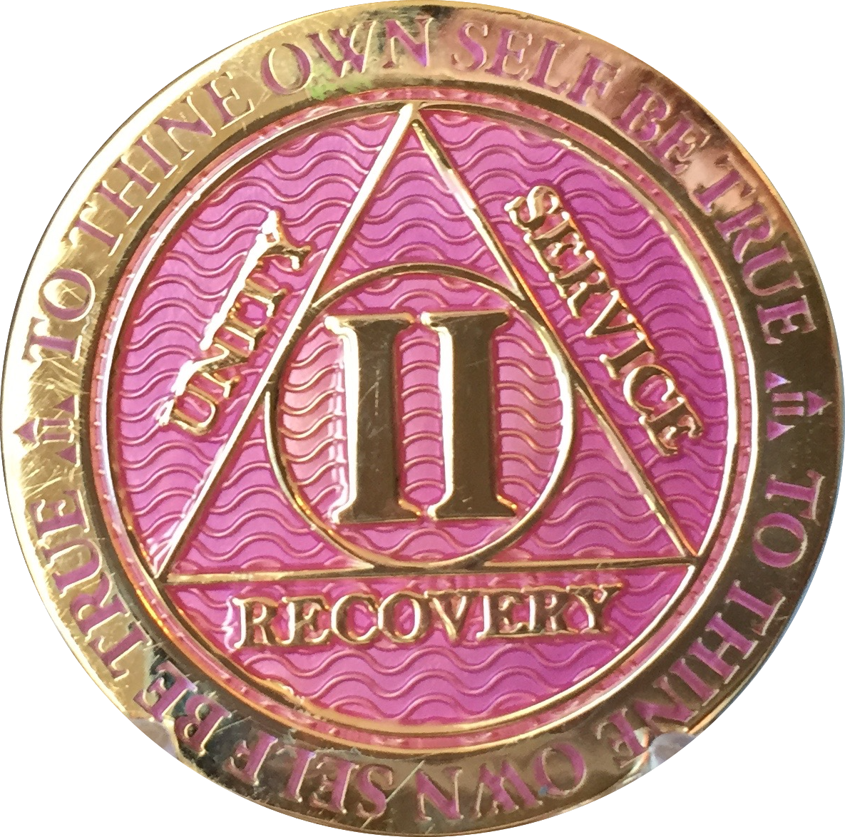 - 2 Year AA Medallion Lavender Pink Gold Alcoholics Anonymous Sobriety Chip Coin