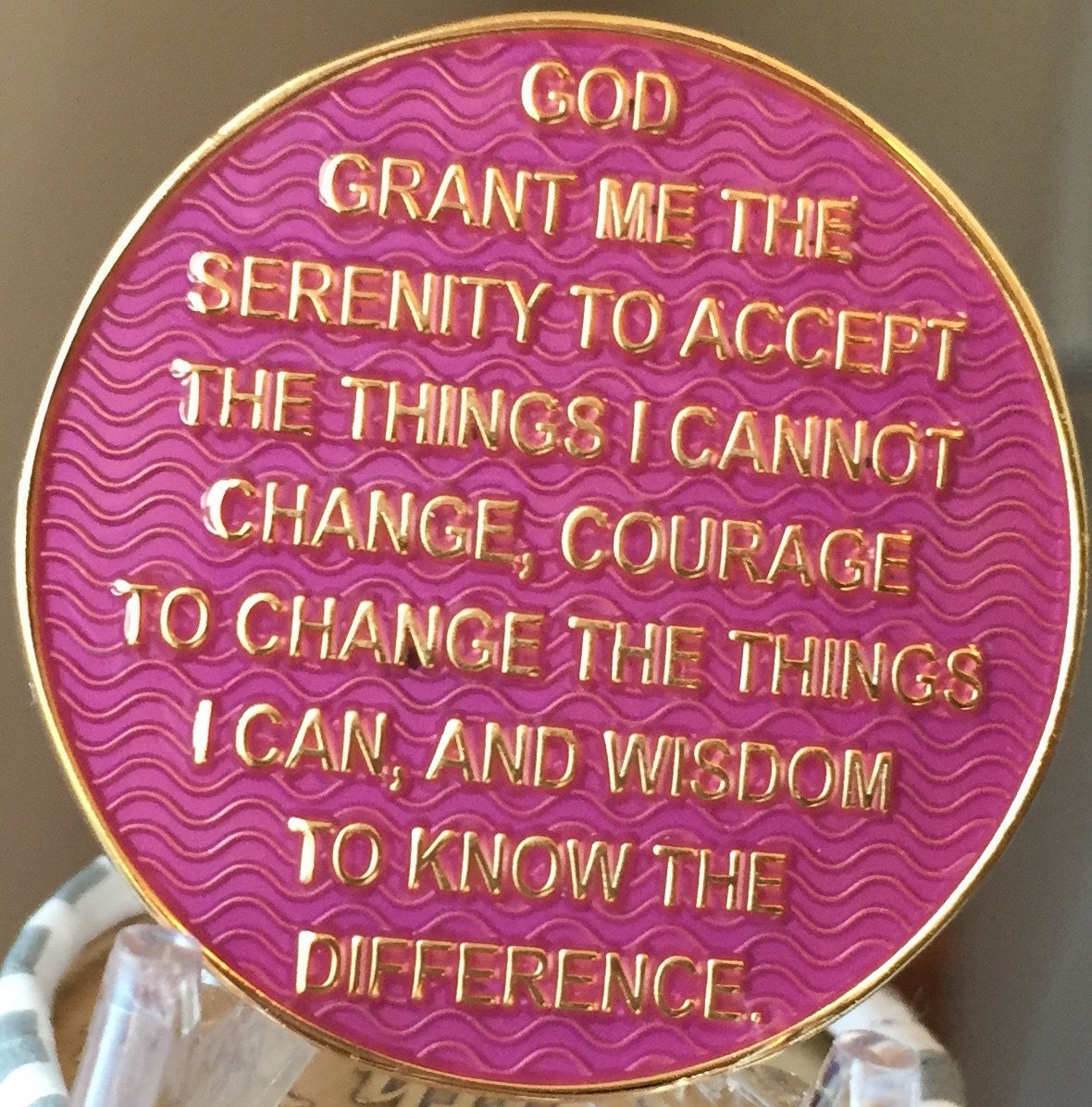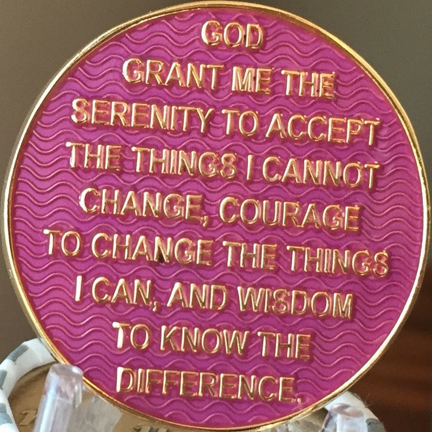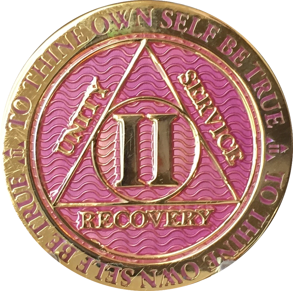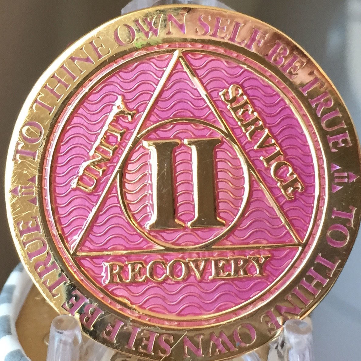 - 2 Year AA Medallion Lavender Pink Gold Alcoholics Anonymous Sobriety Chip Coin
