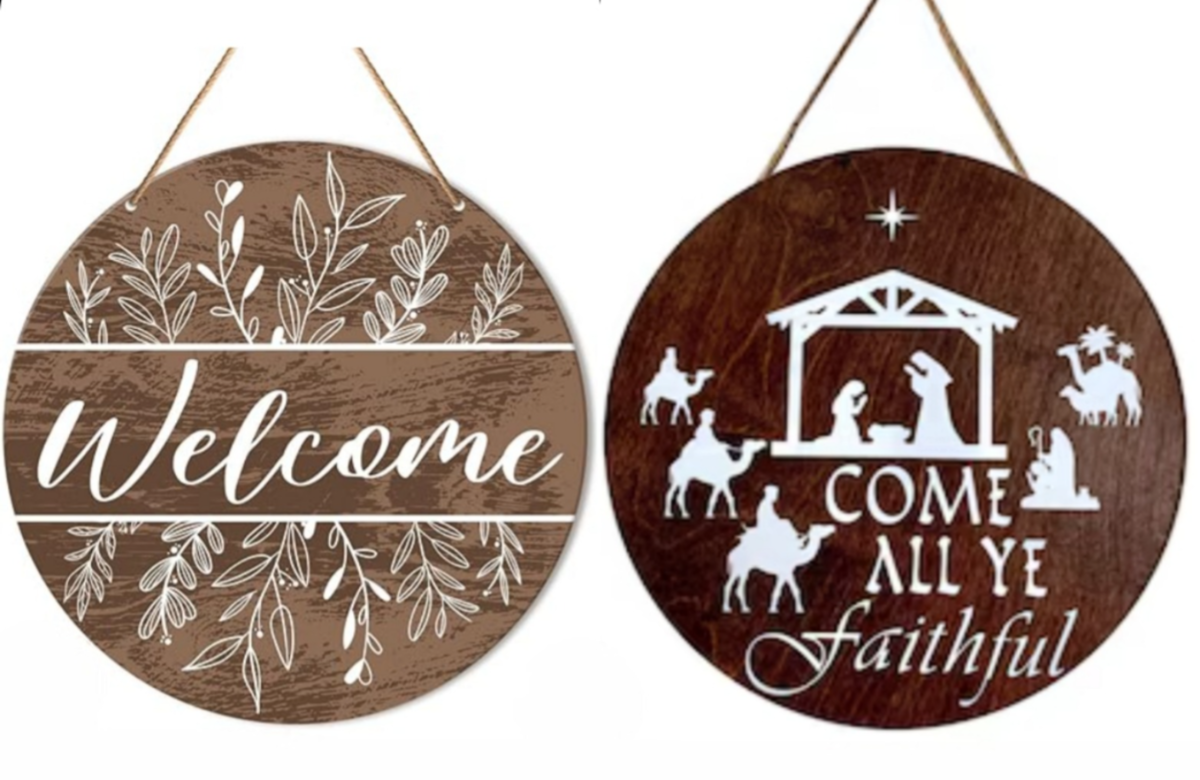 - 2 pack Christmas Wooden Decorative Round Signage Nativity 8X8