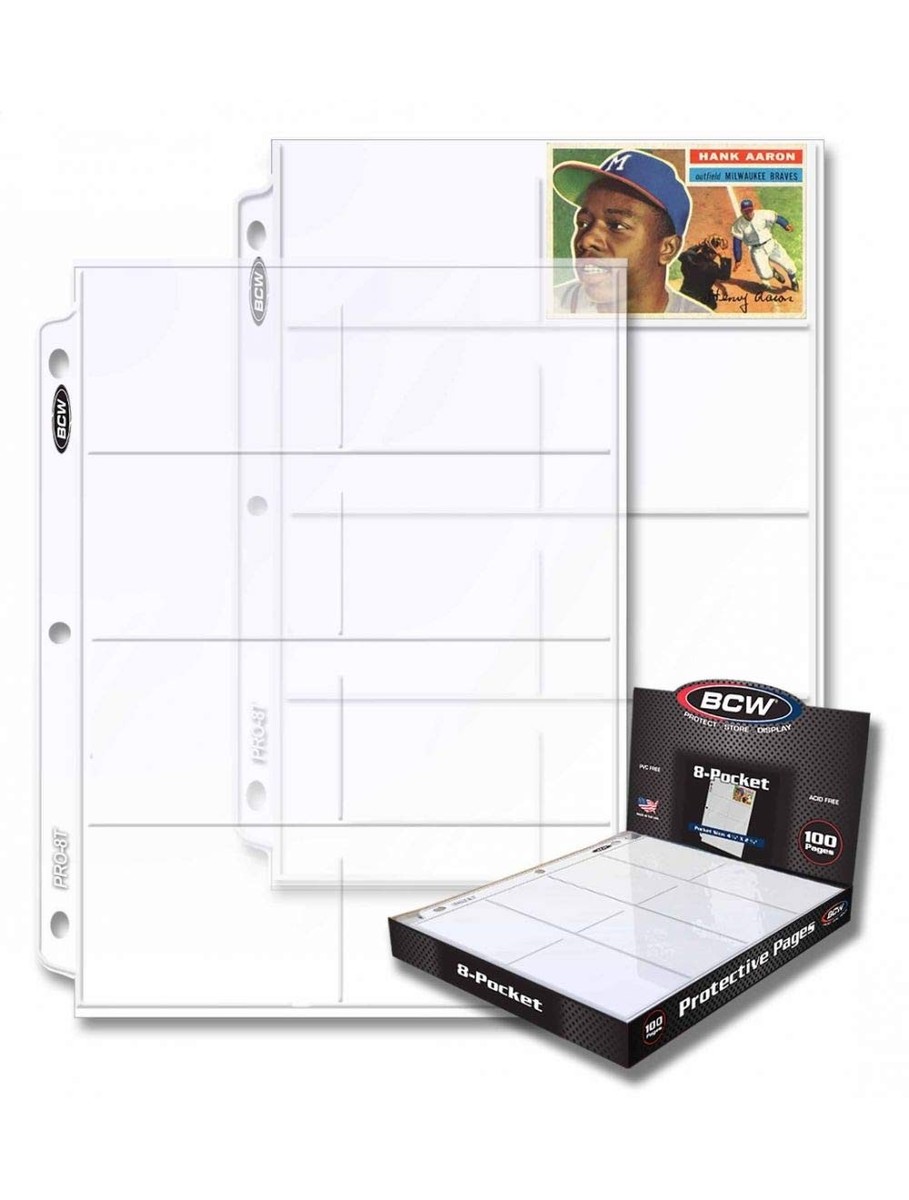 - 2 packs of 100 (200) BCW 4 ⅛" x 2 ¾" Card 8-Pocket Pro Binder Pages