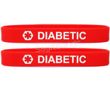 - 2 (two) DIABETIC Red Wristbands - Medical Alert Silicone Bracelets
