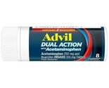 Advil Dual Action Coated Caplets with Acetaminophen are the first and only FDA approved pain relief medication that combines the top two selling pain fighting ingredients for powerful results. Formulated with 250 mg ibuprofen that targets pain at the source and 500 mg acetaminophen that blocks pain signals in each dose, these coated pain relief pills provide relief from a wide variety of aches and pains. This pain medicine provides headache, toothache, menstrual cramp, muscle pain and lower back