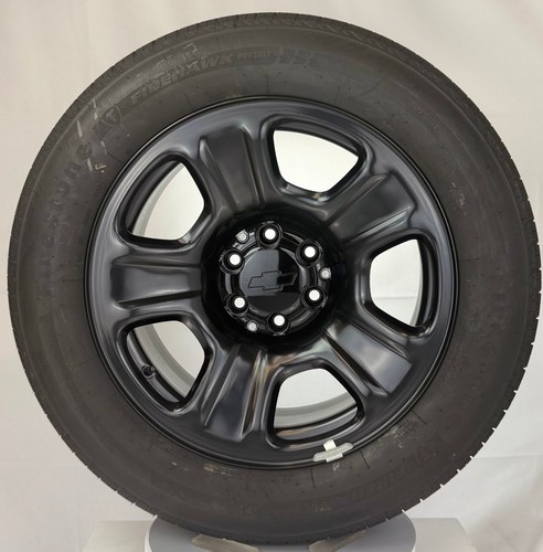 Set Of Four New Takeoff OEM GM 20" Black Steel Police Pursuit Vehicle Wheels With P275/55R20 Firestone Firehawk Pursuit Tires For Chevy Silverado, Tahoe, and Suburban. These were removed from a new vehicle to install larger wheels and tires with less than 25 miles.