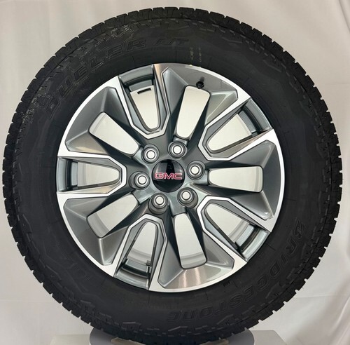 Set Of Four New Takeoff GMC Sierra And Yukon Gunmetal And Machine 20" Wheels With 275/60R20 Bridgestone Dueler All Terrain Tires. These were removed from a new vehicle to install larger wheels and tires with less than 50 miles.