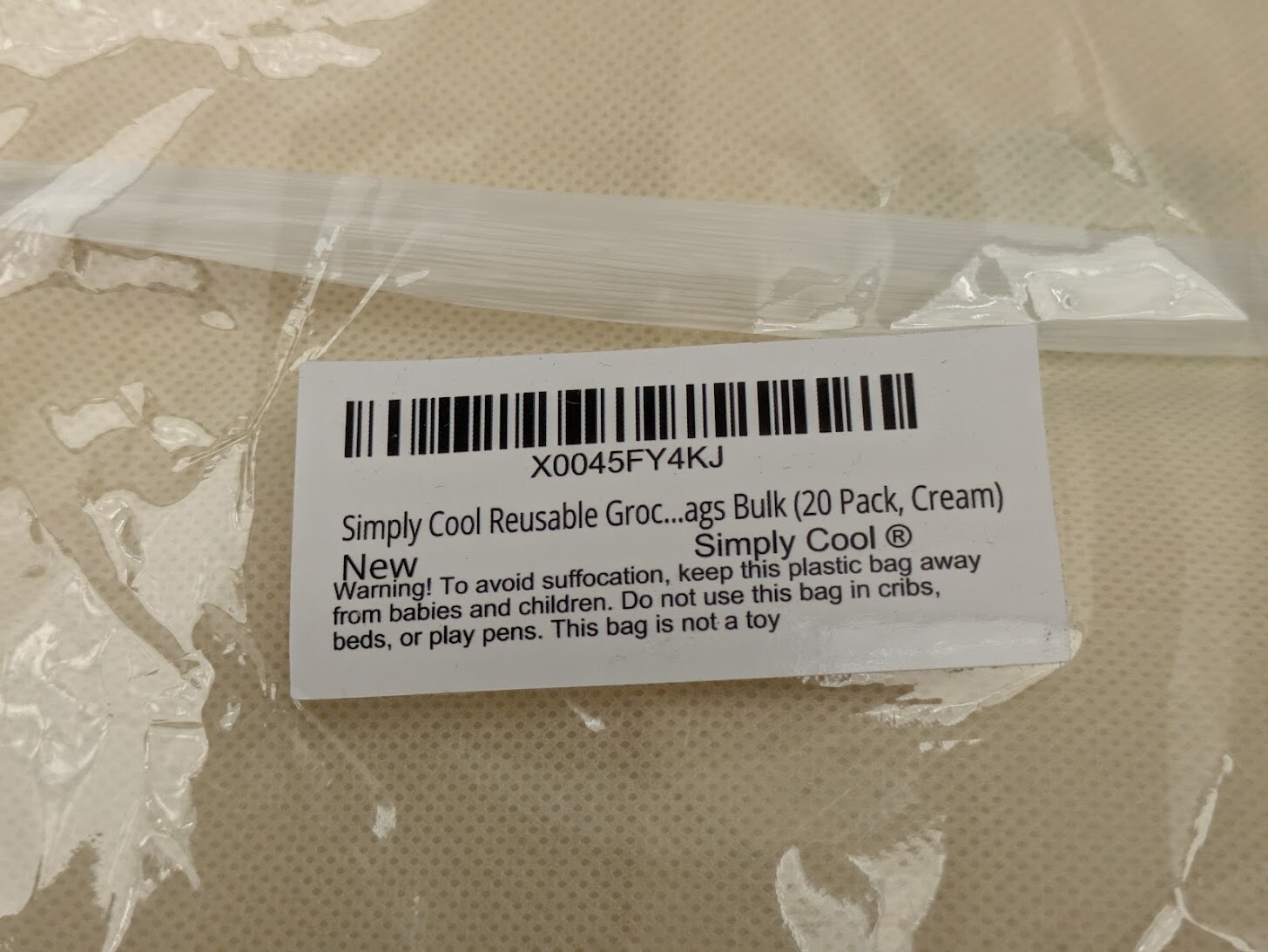 20-Pack Simply Cool Reusable Grocery Bag Cream Eco-Friendly Medium Lightweight