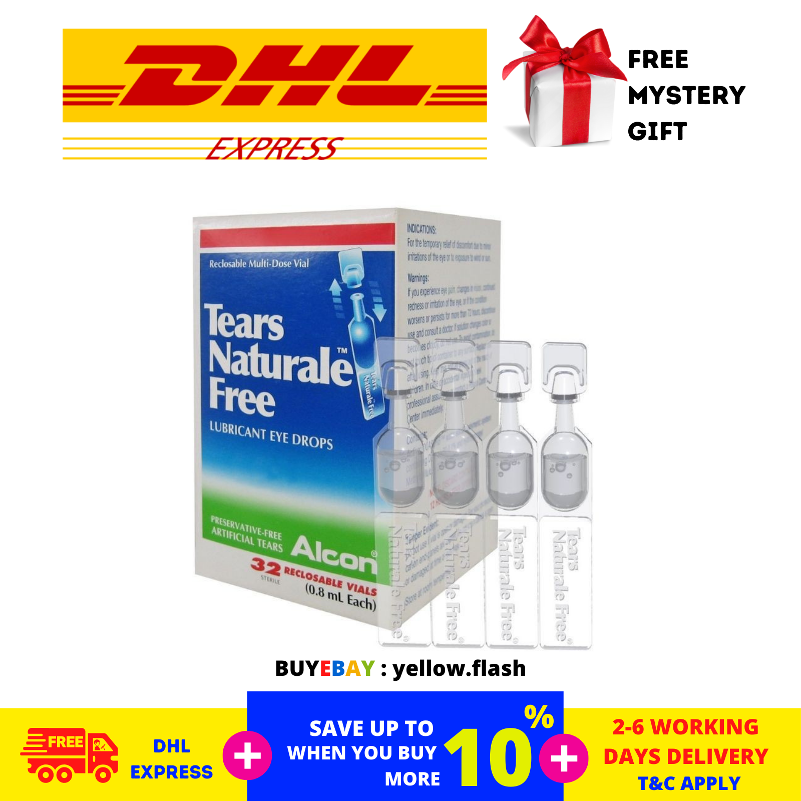 20 x ALCON TEARS NATURALE 0,8 ml X 64 flacons de gouttes ophtalmiques lubrifiantes gratuites chaque DHL Express