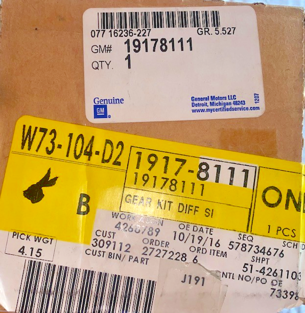 - 2000-2021 GM GEAR KIT, DIFFERENTIAL SIDE & PINION, PART NUMBER 19178111