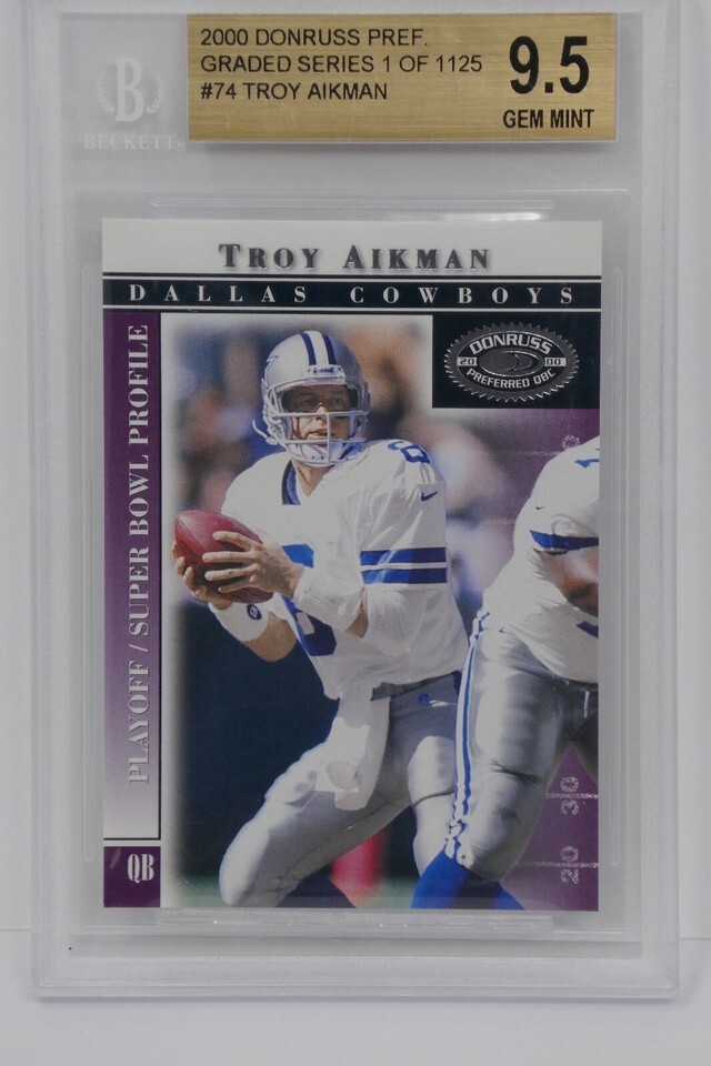 - 2000 Donruss Pref Graded Series 1 of 1125 #74 Troy Aikman Cowboys Beckett 9.5