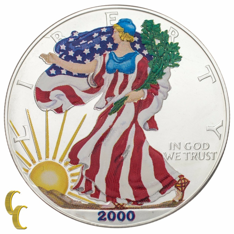2000 Painted Walking Liberty Silver 1oz American Eagle w/ Box & CoA Uncirculated