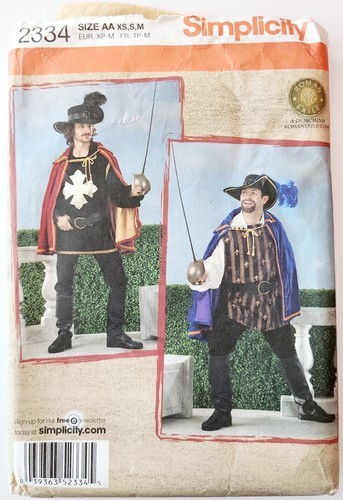 - 2000s Simplicity Sword Man Costume Patterns 2334 Roman Exile Size AA C86