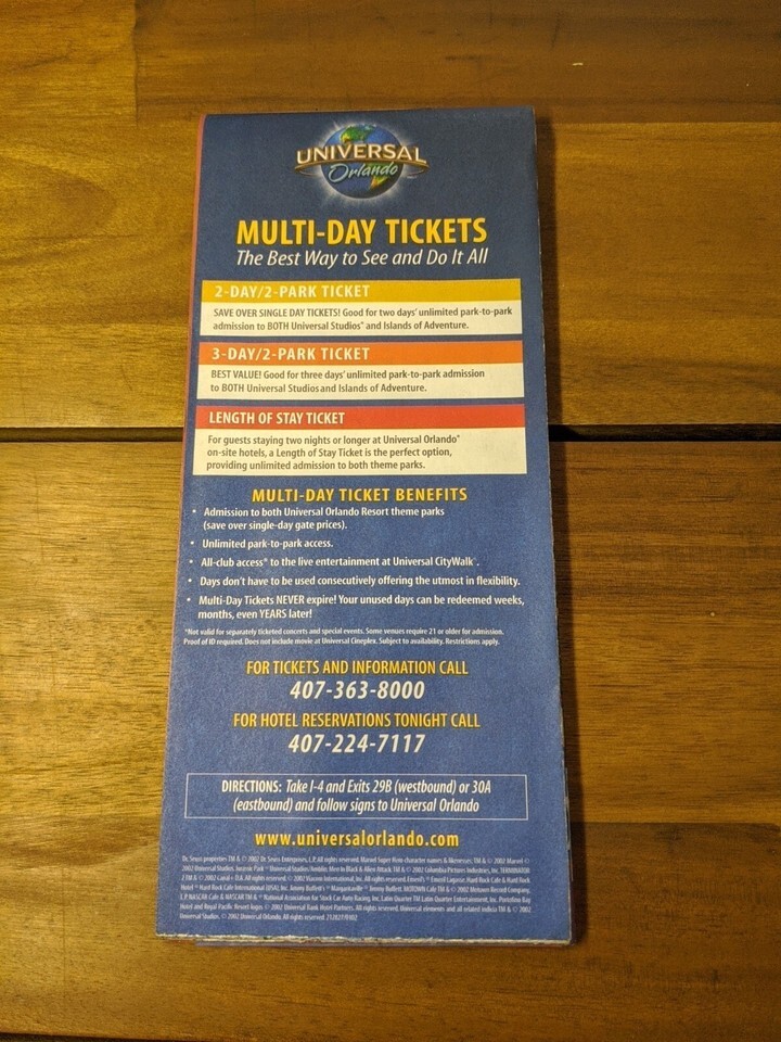 - 2002 Flordias Map Islands Of Adventure Universal Studios