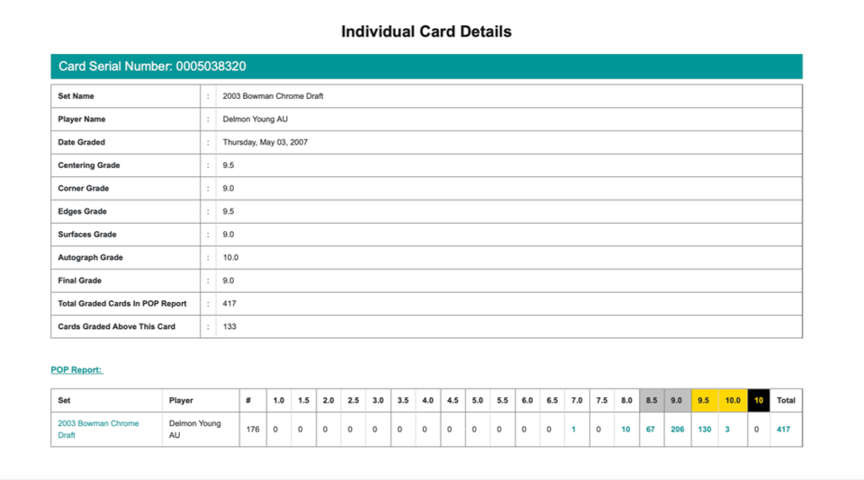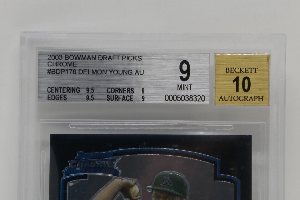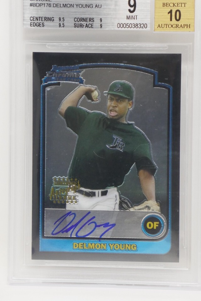 - 2003 Bowman Draft Picks Chrome #BDP176 Delmon Young AU Rookie Beckett 9 MINT
