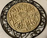 Here is a new older garden wall plaque and could also be used indoors if wanted. , this is from 2003 and has tag on bag as you see in my 1 picture, i bought and had stored away and forgot about it and found it in my boxes i was going through, this is a beautiful architectural design made of poly stone and has metal trim, And has a distressed finish with some cracks in it and is made this way so know this, it has a heart and floral design in a light tan cream color and a brown metal trim, is a beautiful wall plaque and unique , would accent any outdoor wall space or indoor. And is a heavier stone not light weight