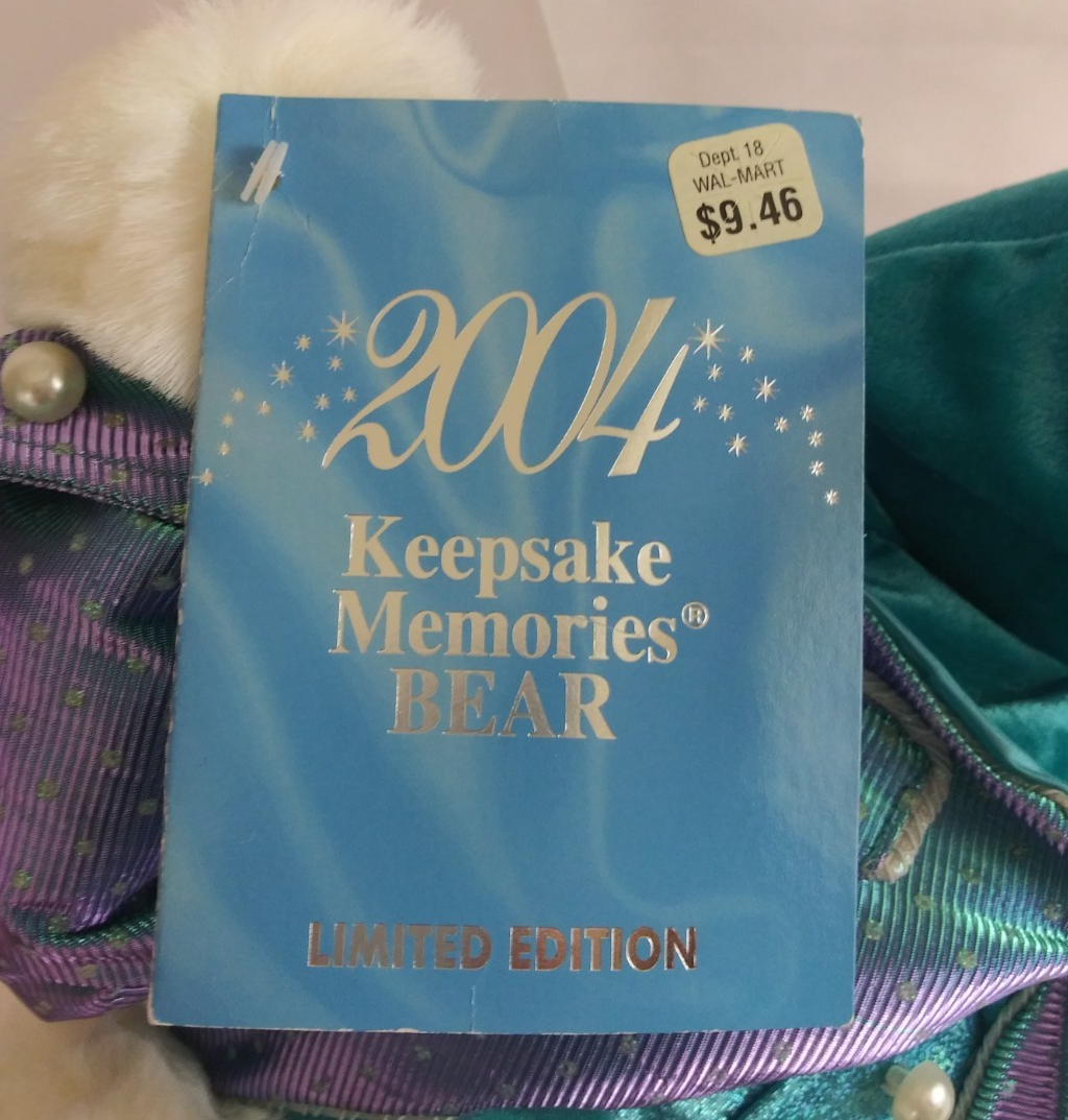 This is for a 2004 Dan Dee Keepsake Memories Teddy Bear Metallic Blue Purple 20" Plush.