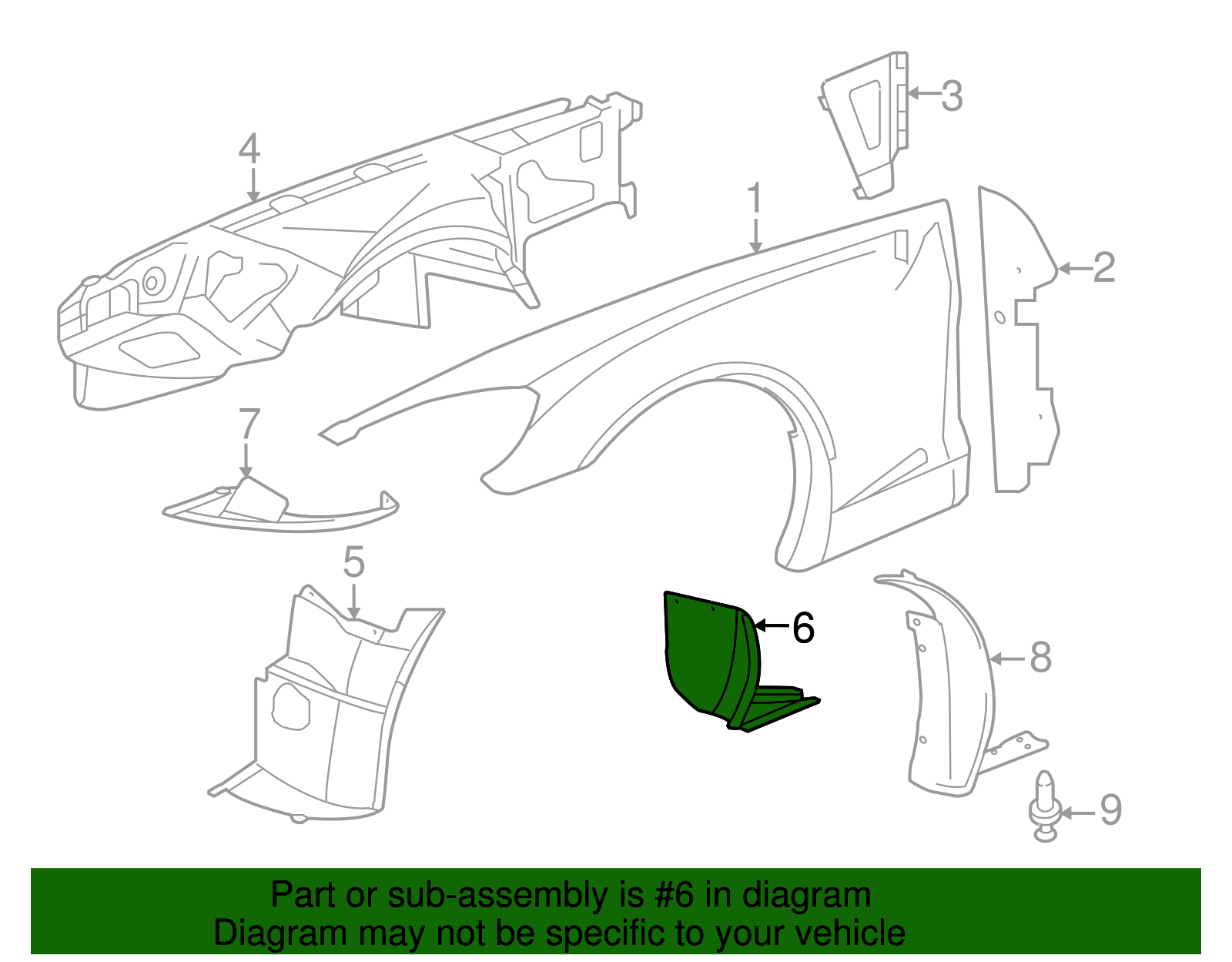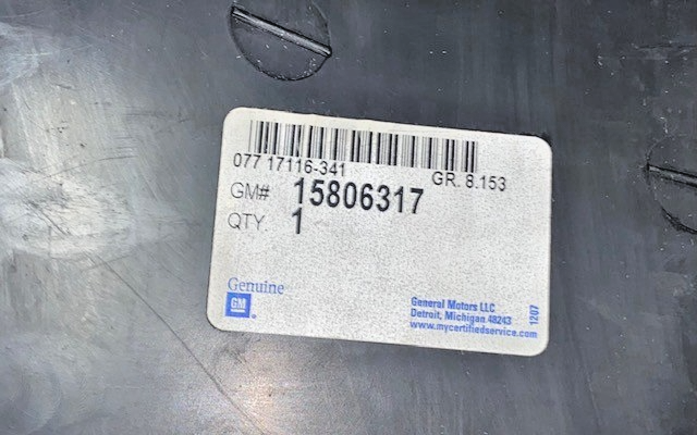 - 2005-2013 NEW GENUINE OEM CHEVY CORVETTE FRONT LH WHEELHOUSE LINER, P/N 15806317