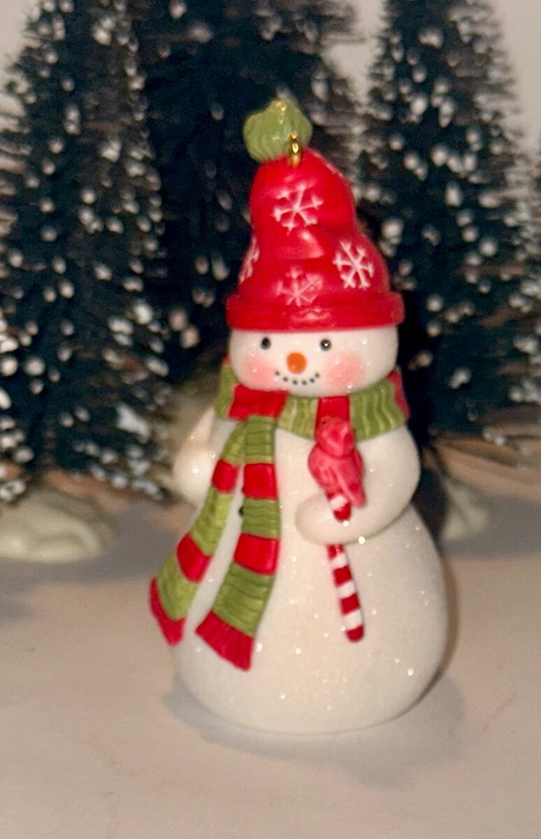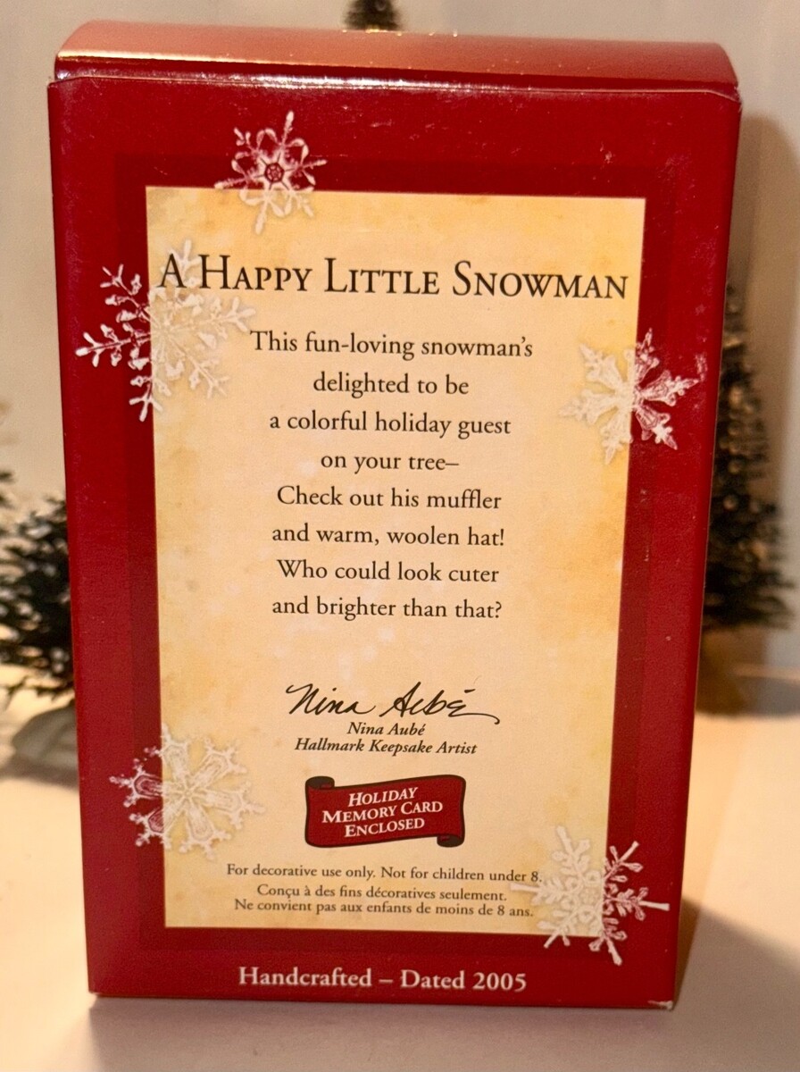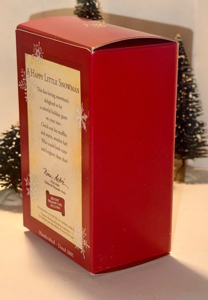 This is the 2005 Hallmark Keepsake Ornament titled A Happy Little Snowman. This ornament is in excellent condition. It comes in the original packaging which is also in excellent condition and includes the Holiday Memory Card. The interior packaging is replaced with bubble wrap.