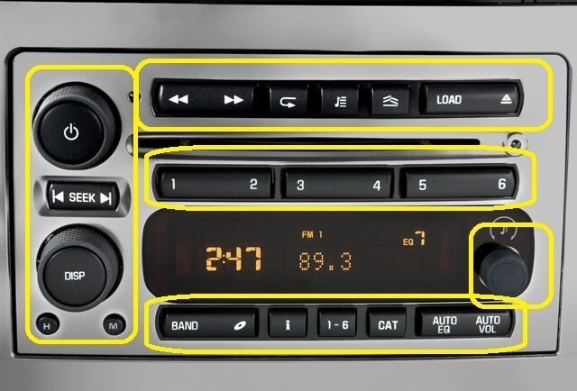 For 6 DISC CD CHANGER CD radios ONLY - YOU MUST HAVE THE "Load / EJ" Button in the upper right side in order for these buttons to work..