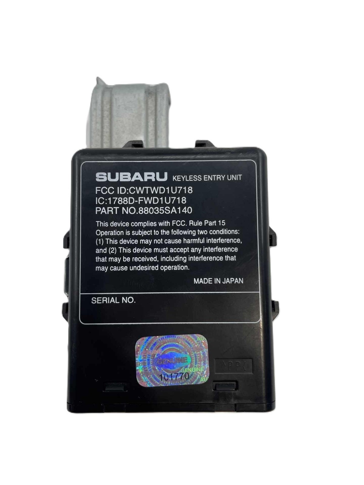Additional notes: 2006-2008 Subaru Forester Anti Theft Locking Keyless Entry Mondule 88035sa140 Needs To Be Programmed