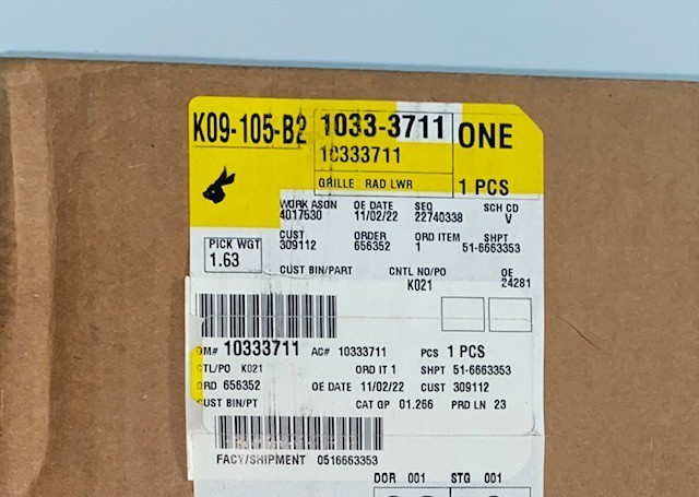 - 2006-2011 NEW GENUINE CHEVY IMPALA RADIATOR LOWER GRILLE, PART NUMBER 10333711