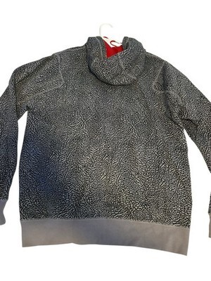 The product is a rare 2007 Nike Air Jordan Cement Cool Grey III 3 Elephant Print Jacket in Men's XL. This vintage track jacket features a polyester outer shell with a fleece fabric type in a stylish gray color. The design showcases the iconic Jordan brand with an elephant print motif, perfect for adding a unique and bold statement to any outfit. The jacket is machine washable for easy care and maintenance, making it a versatile and timeless piece for any man's wardrobe.