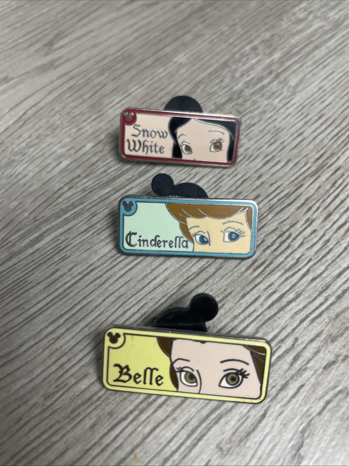 Preowned, good condition. Minor wear. Part of the Princess Rear View series. All have the pin back on them.