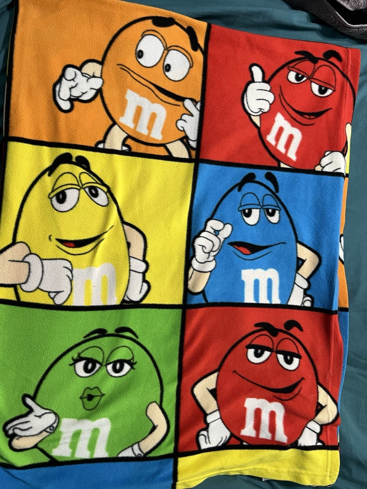 - 2008 M&M's Avon Micro Fleece Throw Blanket Approx. 47” x 63”