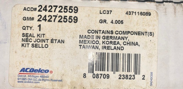 - 2009-2014 NEW GENUINE GM AUTOMATIC TRANSMISSION OVERHAUL SEAL KIT, P/N 24272559