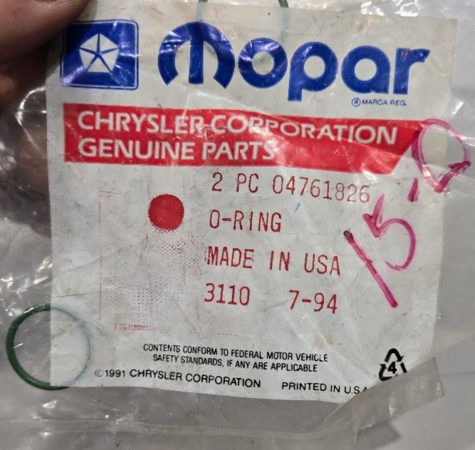 - 2009 THRU 2010 DODGE RAM 1500 A/C HOSE O-RING P/N 04761826 GENUINE OEM PART
