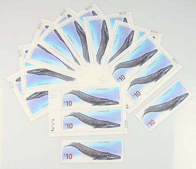 - 2010 Lot of 9 Blue Whale High Value Canadian Stamps w/ Two Loose stamps