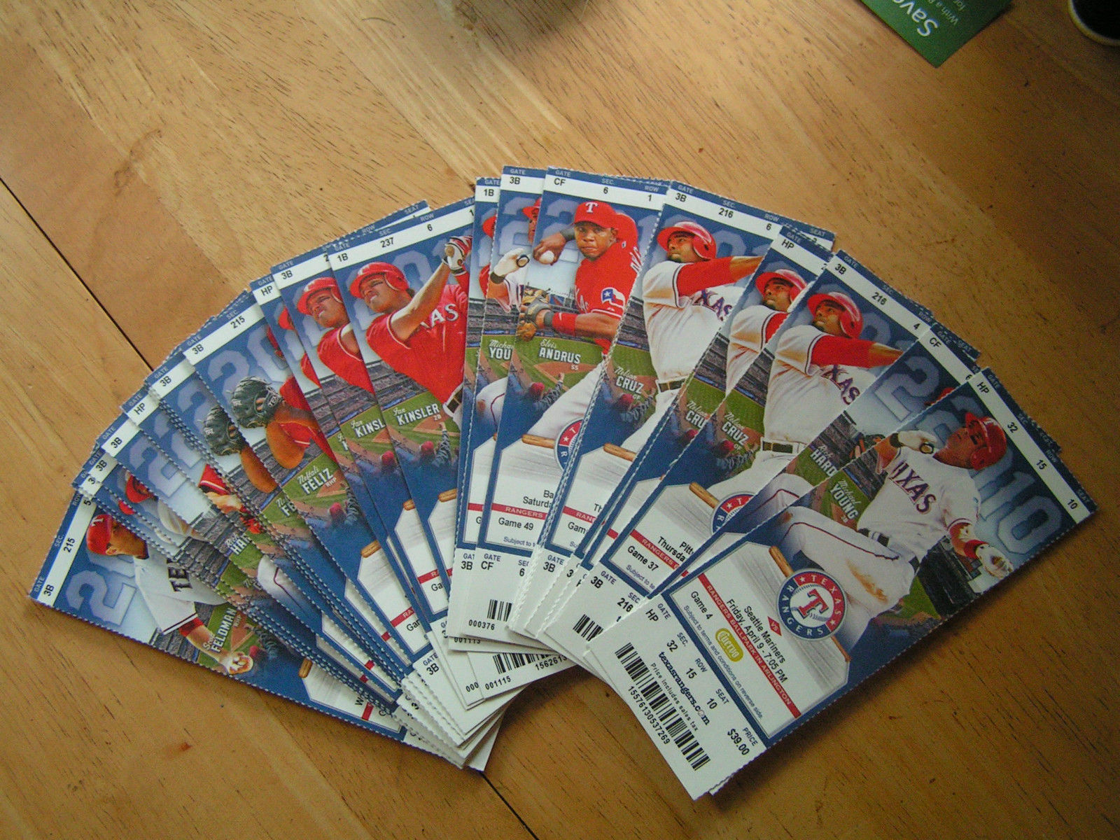 2010 MLB World Series Team Texas Rangers Regular Season Full Tickets